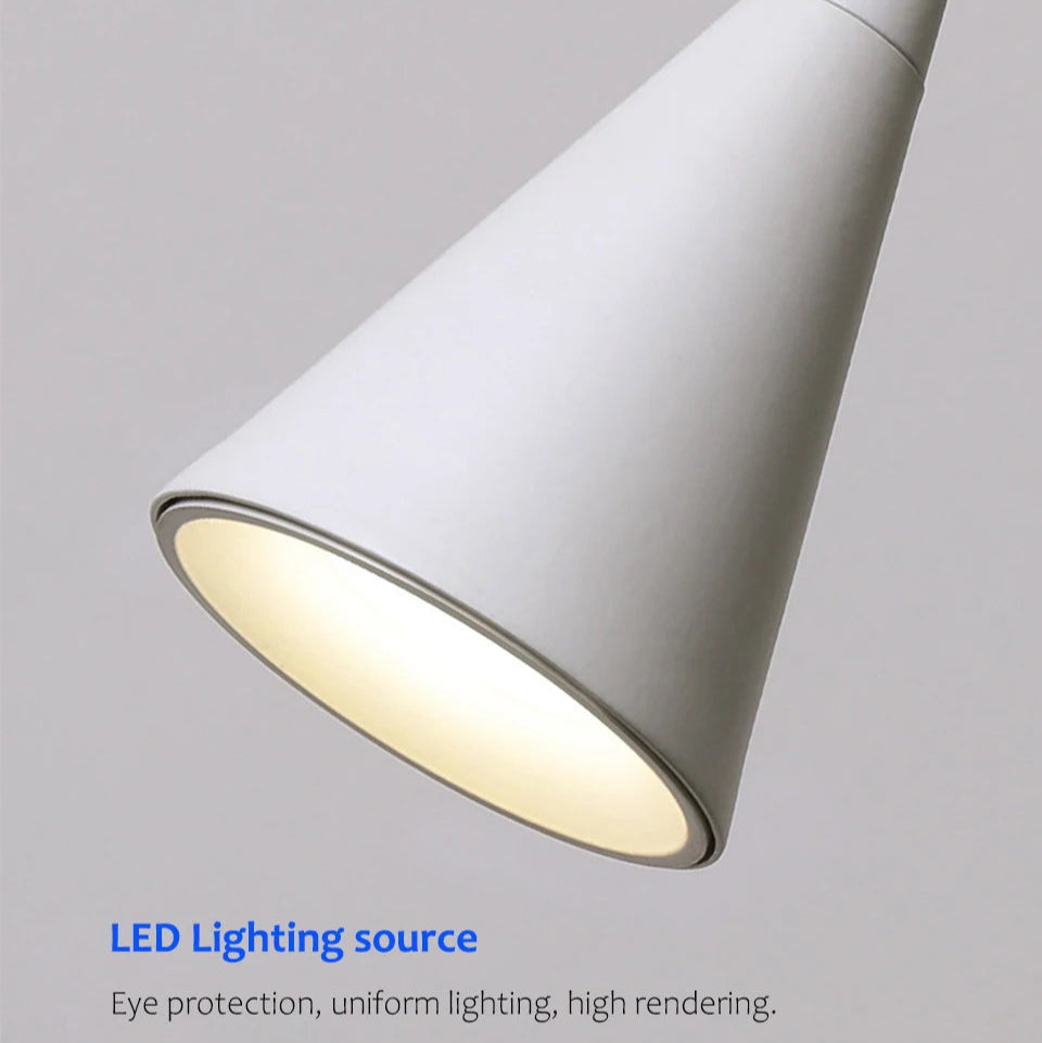 This industrial-style cone pendant light fixture is perfect for adding a modern touch to your kitchen or bedroom. With its sleek black and white design, it provides both functionality and aesthetic appeal, making it an ideal choice for home decoration.