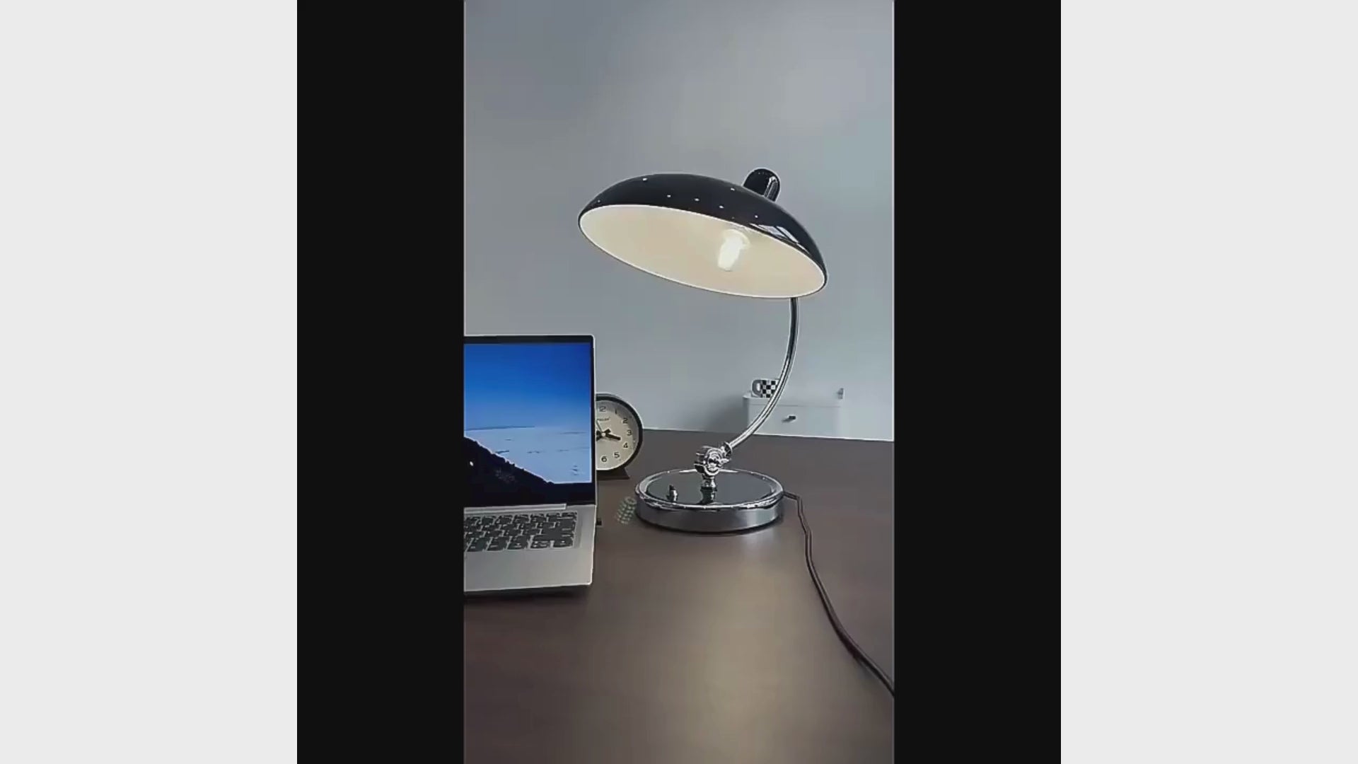 Upgrade your space with the Denmark Table Lamp, inspired by classic Bauhaus design. This vintage desk light features a sleek chrome finish and is available in stylish shades of white, black, green, or red.